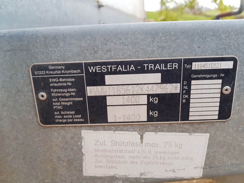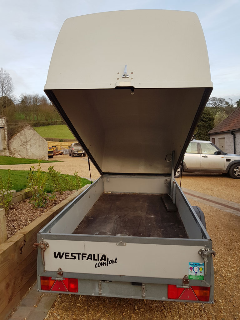 3.0m single axle Westfalia trailer, good gas struts, attachment point for fan, rear latch and additional side catches for additional security. Fully serviced, in good order.