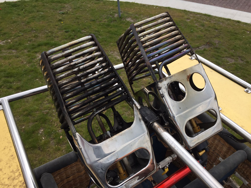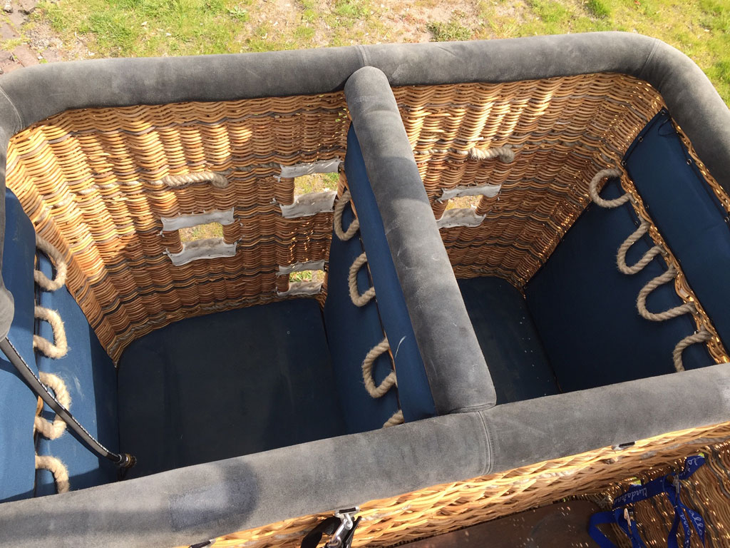 Cameron TT 180/210 basket, built 1998, approximately 400 hrs. Inside dimensions 2.55m x 1.55m. Outside dimensions 2.63m x 1.63m. Black suede top rim, sidewall padding, cushion floor, fire extinguisher, drop line, pilot restraint harness, in good condition, recently varnished with Danish oil. Cameron Stealth/Shadow double burner, built 1998, approximately 400 hrs. Liquid pilot lights, hoses dated 12/2015, REGO fittings. Immediately available.