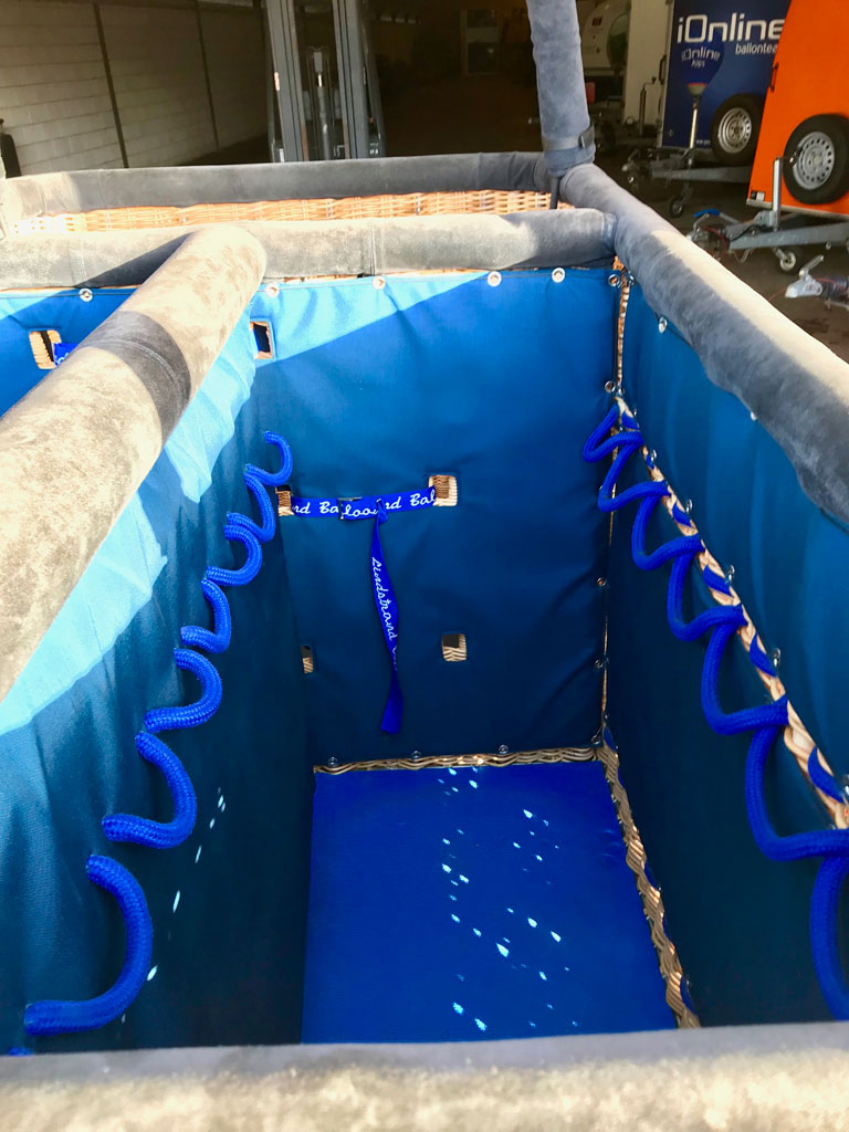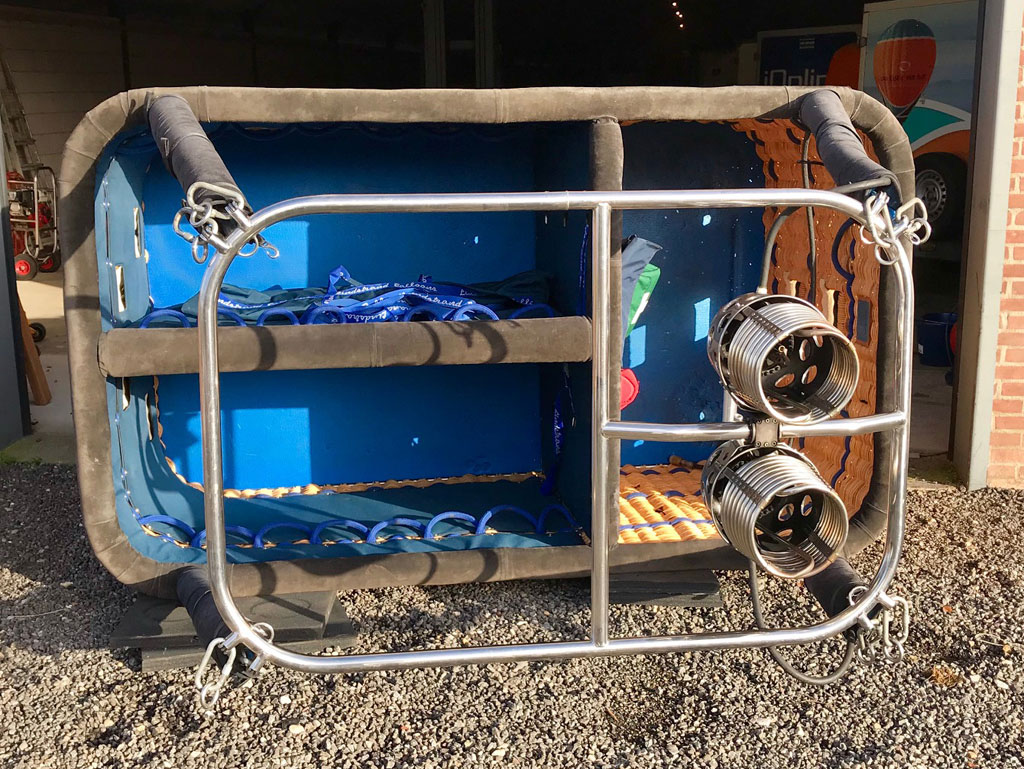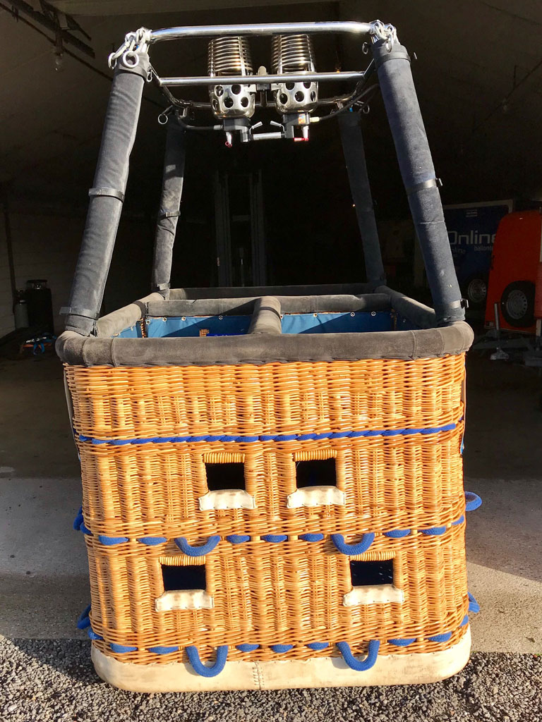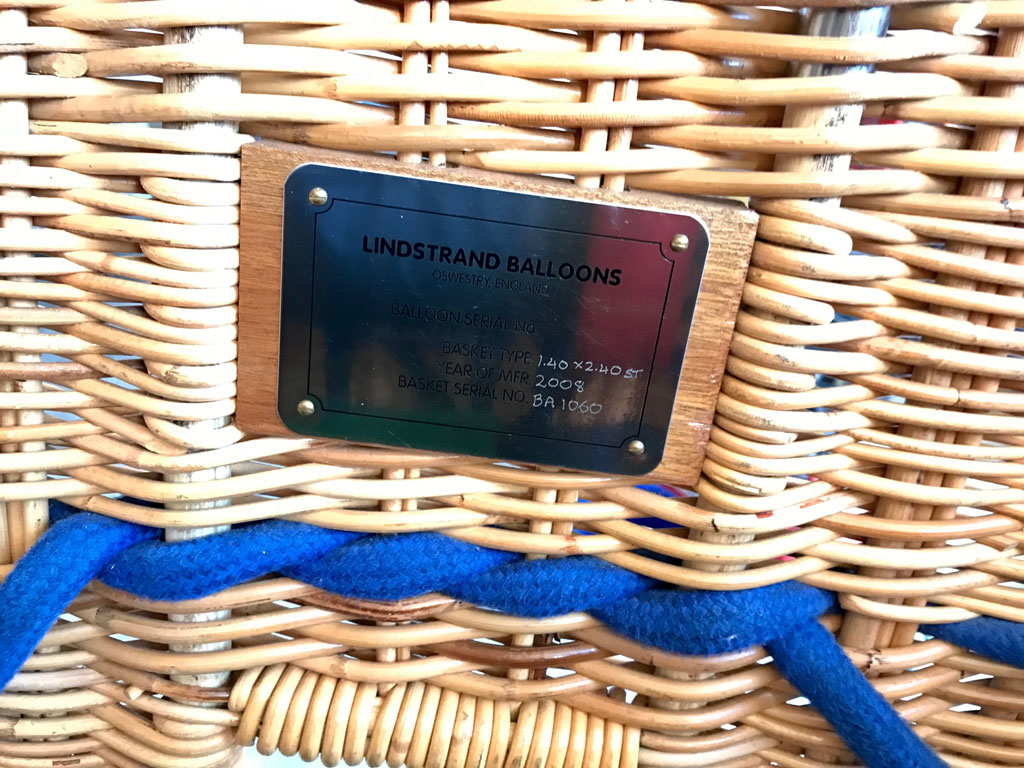 Lindstrand single T basket, built 2008. 2.4m x 1.4m. Suede top rim, sidewall padding, cushion floor. Lindstrand Jetstream double burner, built 12/2008, liquid pilot lights, REGO fittings, needs new hoses. Last inspection 02/2018, not flown since.