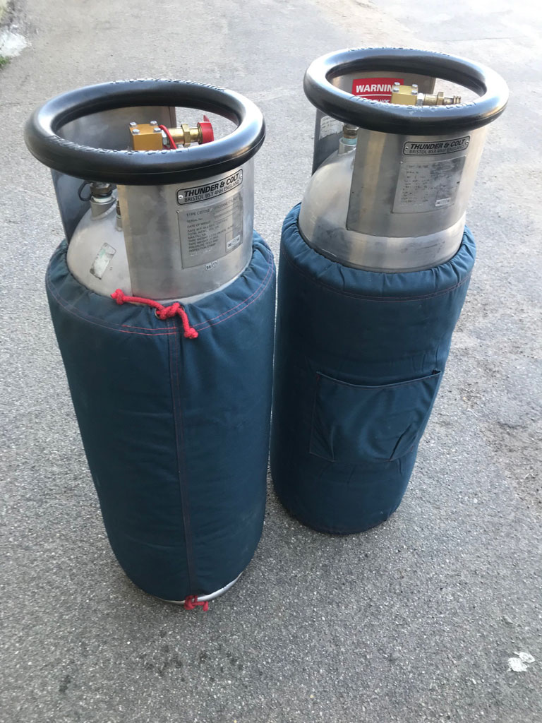 2x Cameron CB2088 cylinders, built 12/1994 and 08/1995. Usable volume 53 liter. Slave, quick shut off valve, REGO fitting, blue cover. PRV/PPT/INT valid until 03/2026. In good condition.