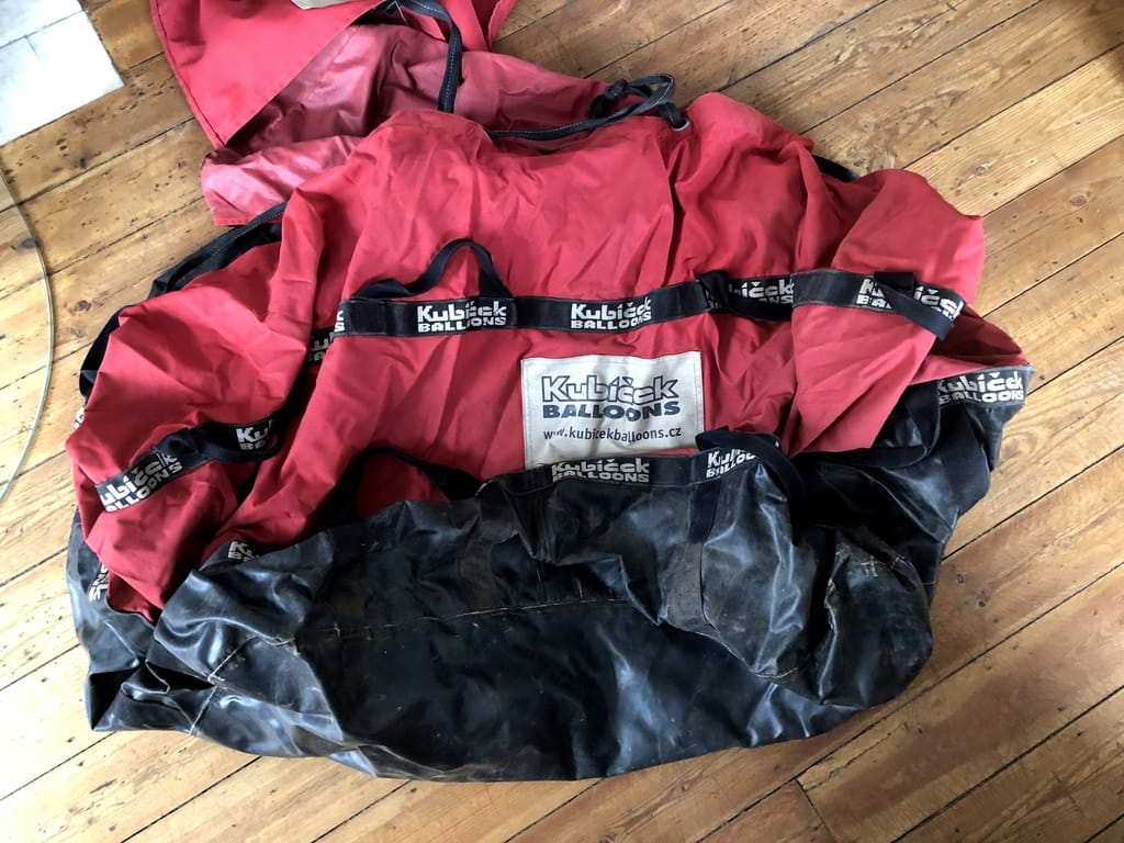 Kubicek envelope bag, suitable for balloons up to 90.000 ft3 / 2.600 m3. Bit dusty but in good condition, 2 repairs done.