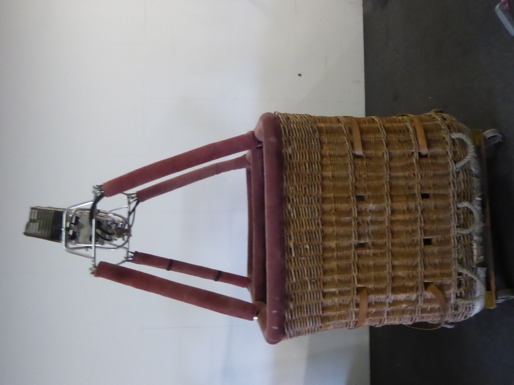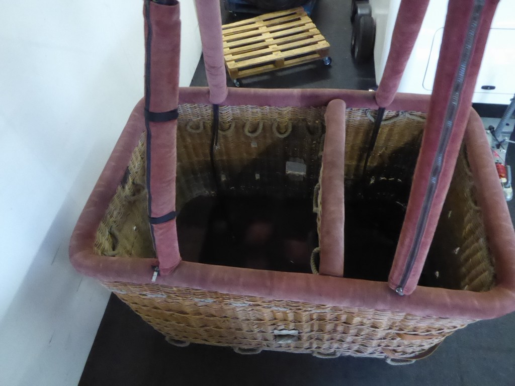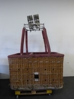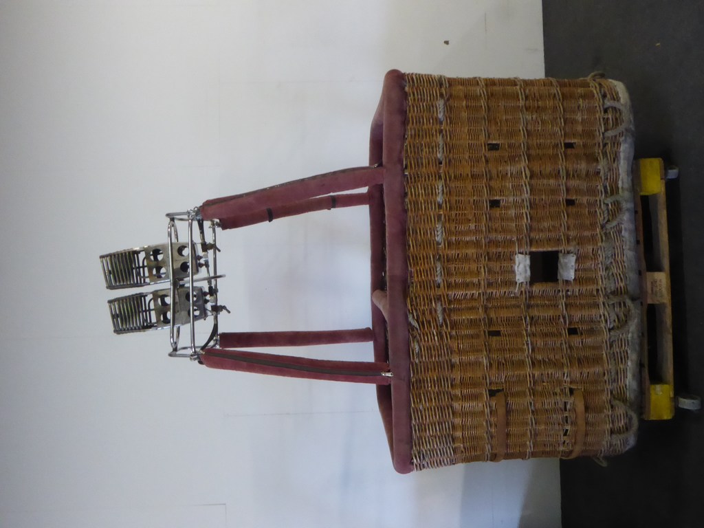 Cameron 120P basket, outside dimensions 1.88m x 1.17m x 1.10m. Inner height 1.05m. Red suede top rim, cushion floor. Cameron MK4 double burner, vapour pilot lights, REGO fittings. Can be delivered with inspection documents and new hoses at extra costs.