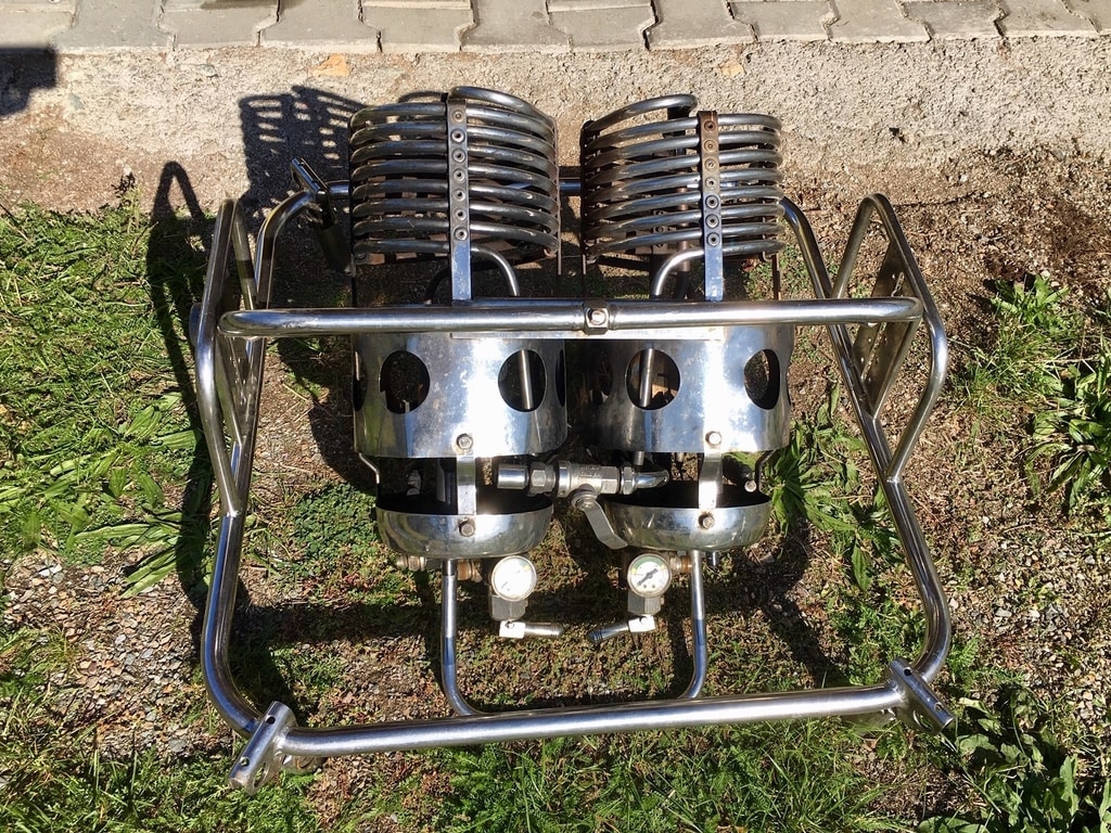 Kubicek H3D double burner, built 1996, 224 flights, 227 hrs. Liquid pilot lights, height adjustable frame. Needs new hoses, can be included at cost. In good condition.