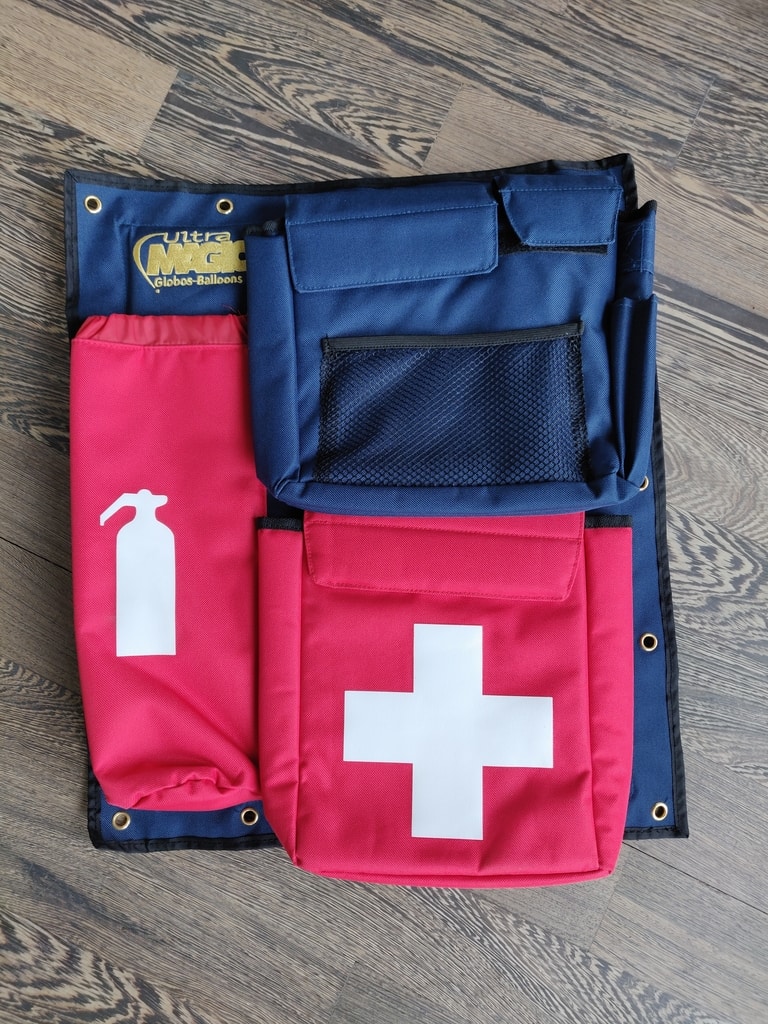 Ultramagic basket tidy with pocket for fire extinguisher and removable bag for first aid kit.