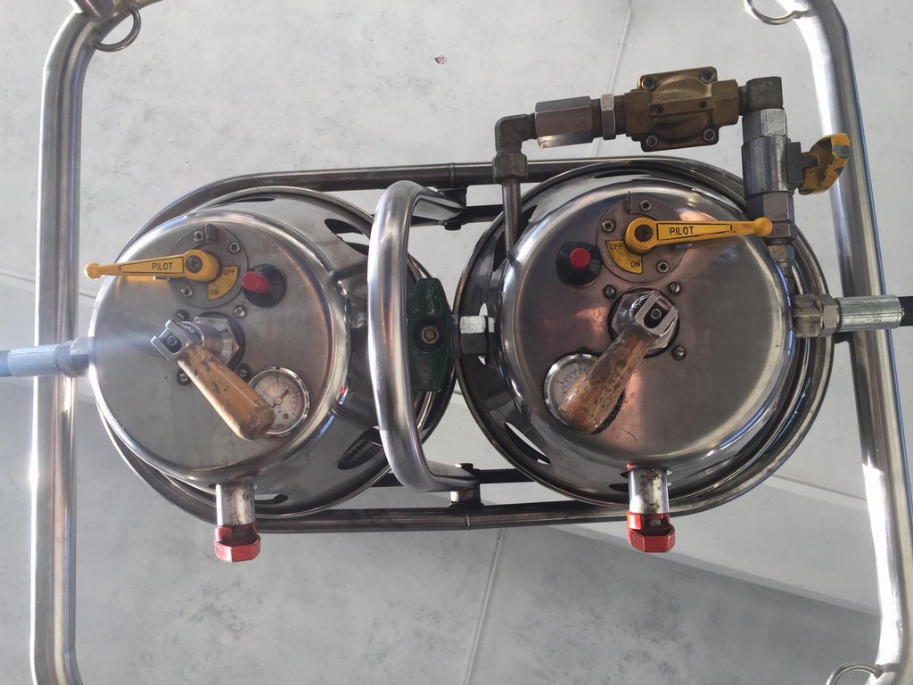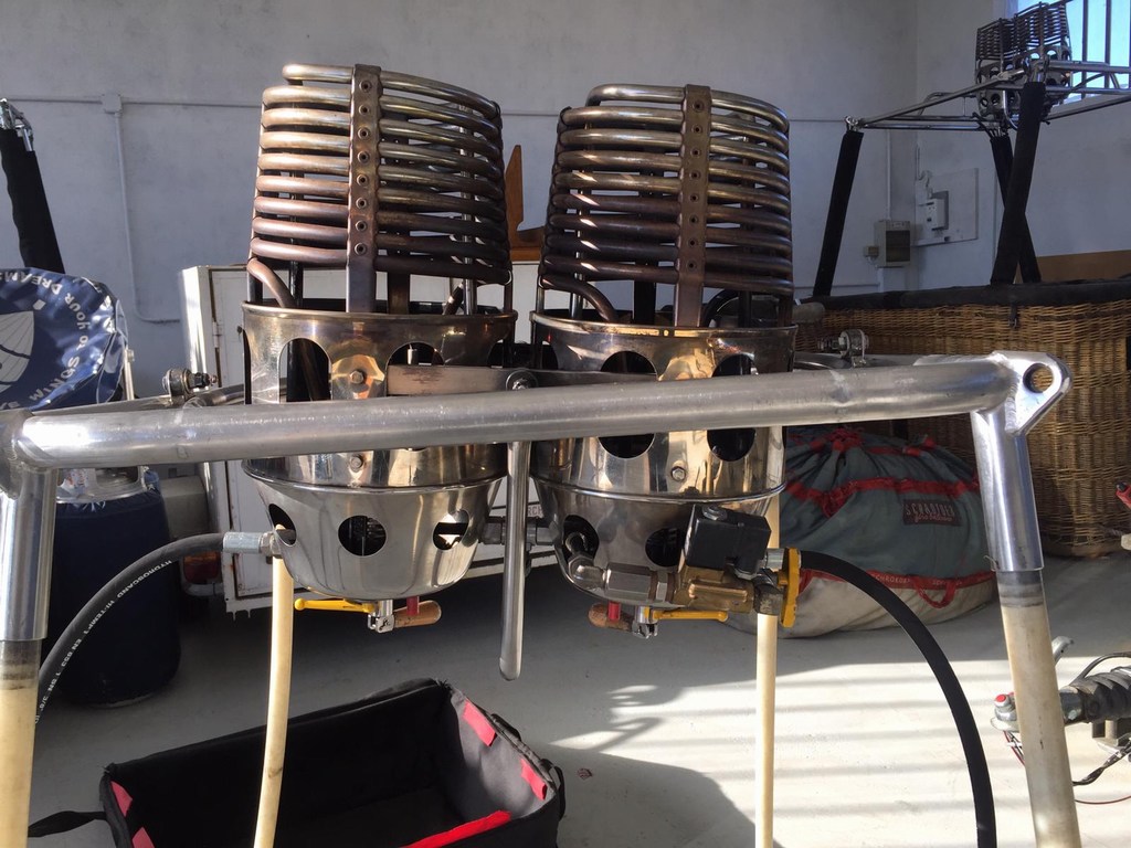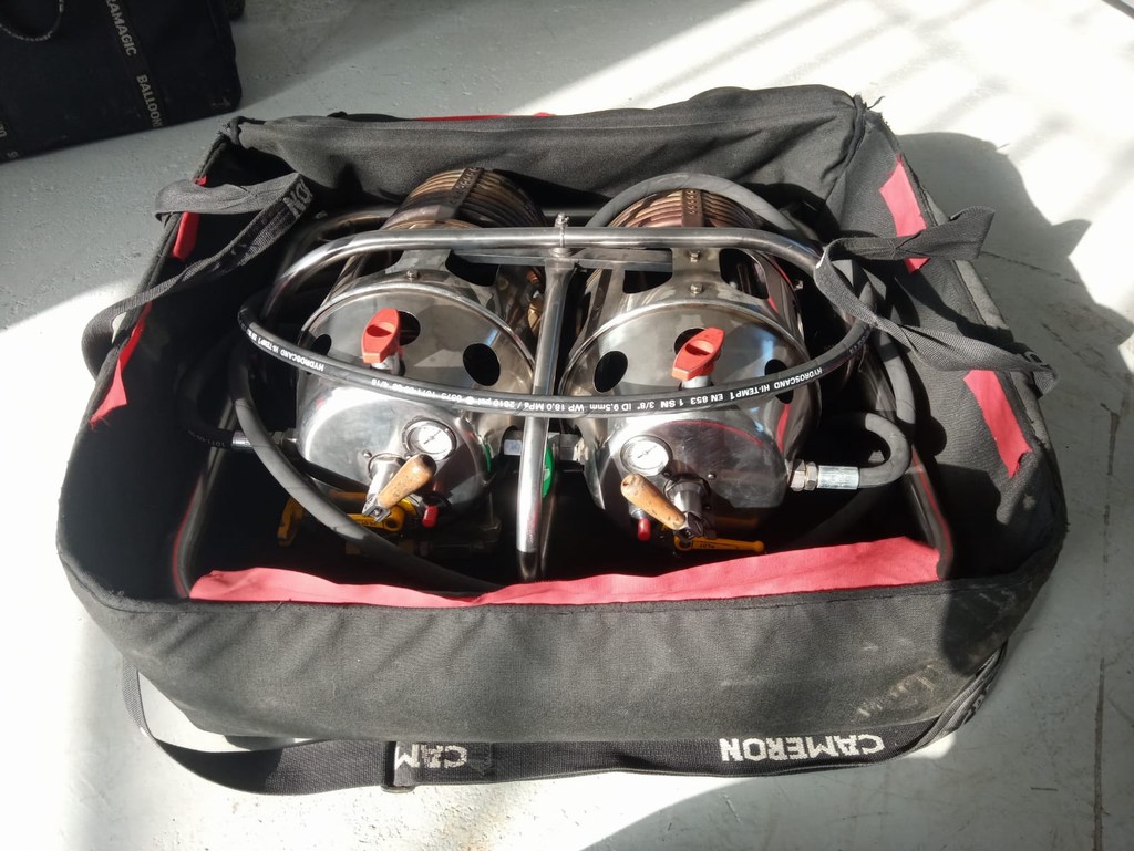 Thunder MK3 double burner, built 1992. Liquid pilot lights, REGO fittings, hoses dated 10/2017. In good condition. Recently serviced, comes with fresh EASA Form 1.
