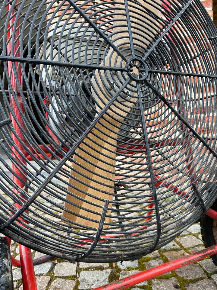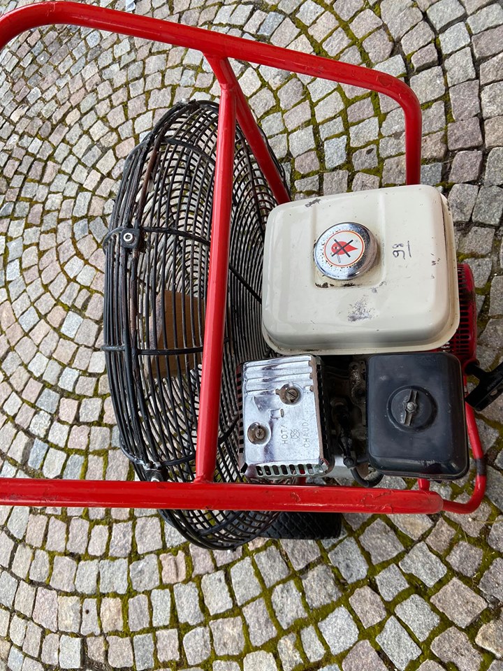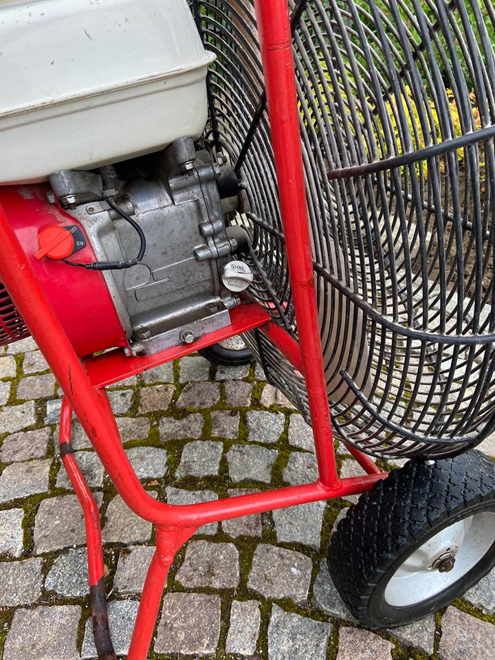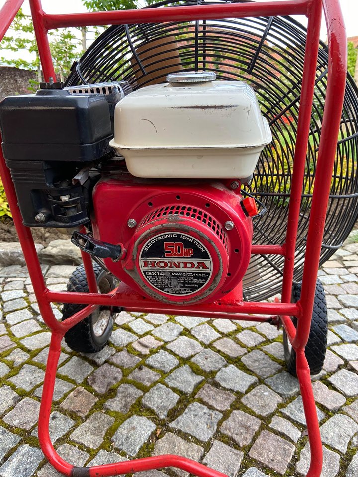 5.0 HP inflation fan, steel frame with fixed axle, wooden propeller in good condition, Honda engine in good condition.