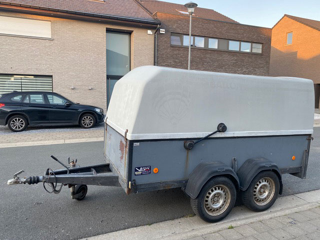 3.0m tandem axle Westfalia trailer, built 1998. New gas struts, good tires, front brakes recently renewed. Paint needs some attention. Max load 2000 kg.