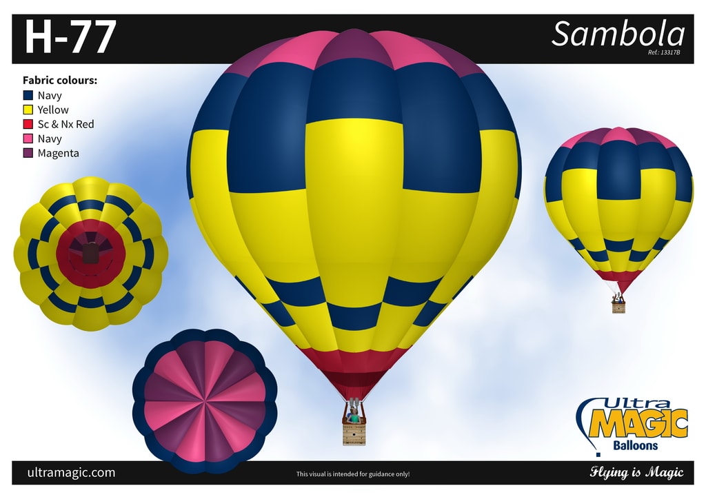 EC-GZR, Ultramagic H-77, built 1999, 238 flights, 329 hrs. Hyperlast top (parachute + 5 rows). All ripstop fabric below Hyperlast rebuilt in 2017, 92 flights, 101 hrs since rebuilt. Turning vents, velcro for banners all around. ARC expired 07/2020 but can be sold with fresh ARC if required.