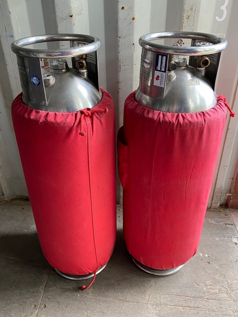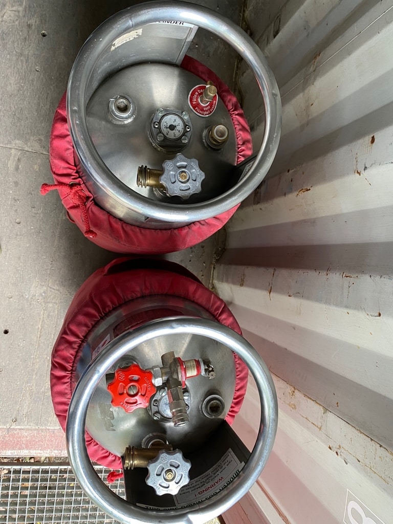 2x Cameron CB2088 cylinders, built 04/2003, usable volume 53 liter. REGO fitting. Red cover. 1x master (Dynaquip), 1x slave. PRV/PPT/INT valid until 04/2022.