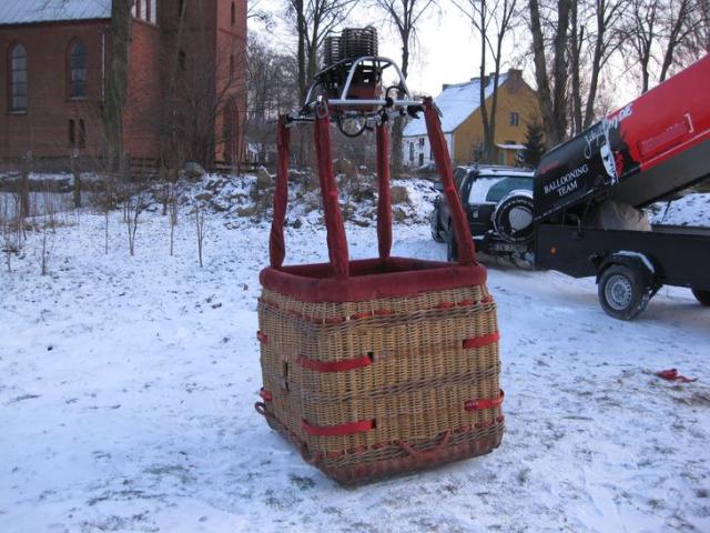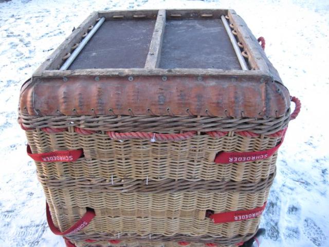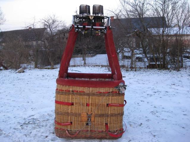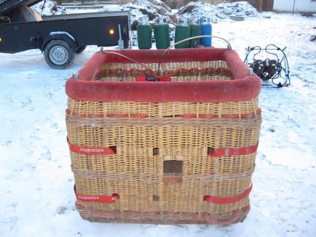 Schroeder 2+1 basket, perfect for sport flights. Very good condition, no damages. Burner Schroeder FB V. Hoses replaced in 2005. Bottom end stored in Bielefeld (Germany), annual inspection carried out September 2012.