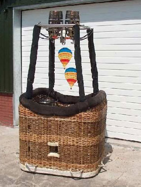 Complete Balloonbasket, with burner and 1 fuel tank. For rent to show in your display window or on a market. Costs € 50,- per day, if basket is picked up and returned by renter. When we have to deliver and pickup the basket, travel expenses will be charged.