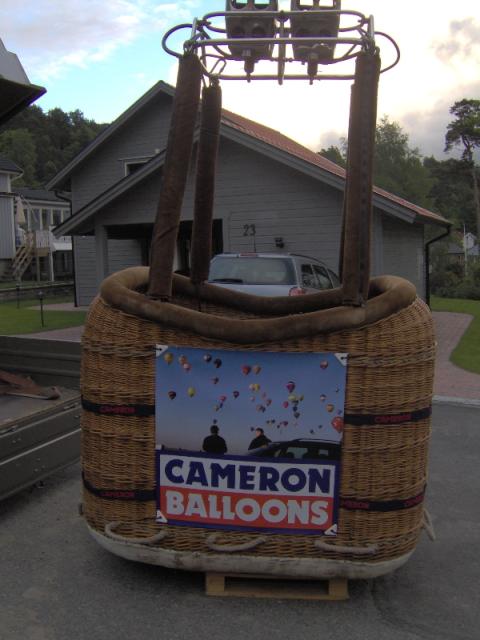 Cameron Aristocrat CB300-3A Basket (77-84), only 26 hrs. Like new! Been used for a special shape. No damages. Ready to fly! No burner included. Poles, covers, pole bag in brown cordura. Tank straps as new. Cameron basket banner is NOT included.