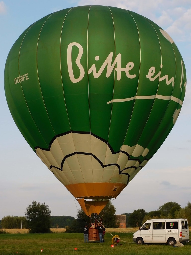 OO-BFE, Schroeder Fire Balloons G 30/24, built 2002, 370 flights, 395 hrs. 3.000 m3 / 105.000 ft3. Thermogrip top (parachute + 1 row). Paraquick fast deflation system. High fuel consumption, sticky fabric. ARC expired.
