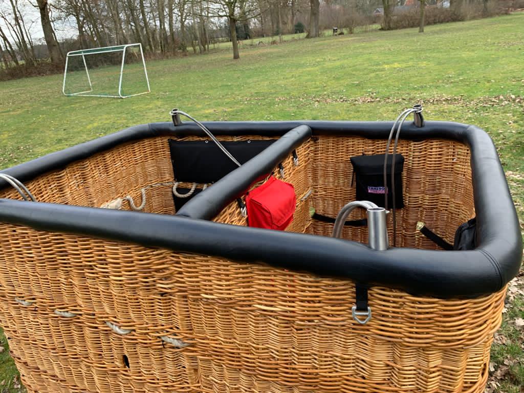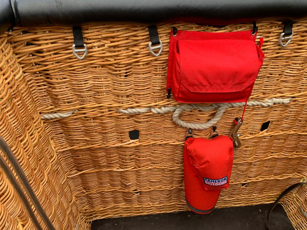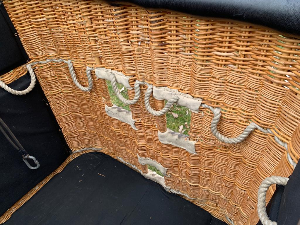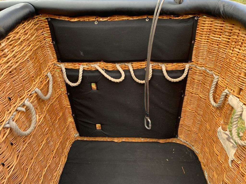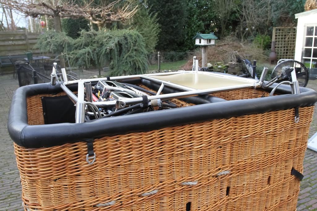Cameron 120P basket, approximately 300 hrs. Black leather top rim, sidewall padding and cushion floor in passenger compartiment. 2kg fire extinguisher, fire blanket, first aid kit, dropline, pilot restraint anchor, document bag, 8 leather belts. Cameron Stealth/Shadow double burner, approximately 300 hrs. Liquid pilot lights, REGO fittings, new hoses. In big frame with metal heat shield. In very nice condition, only normal signs of use. Comes with EASA Form 1.