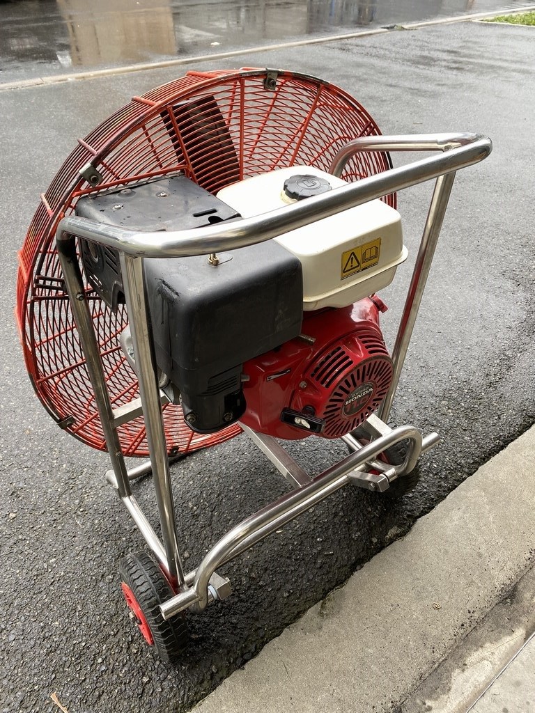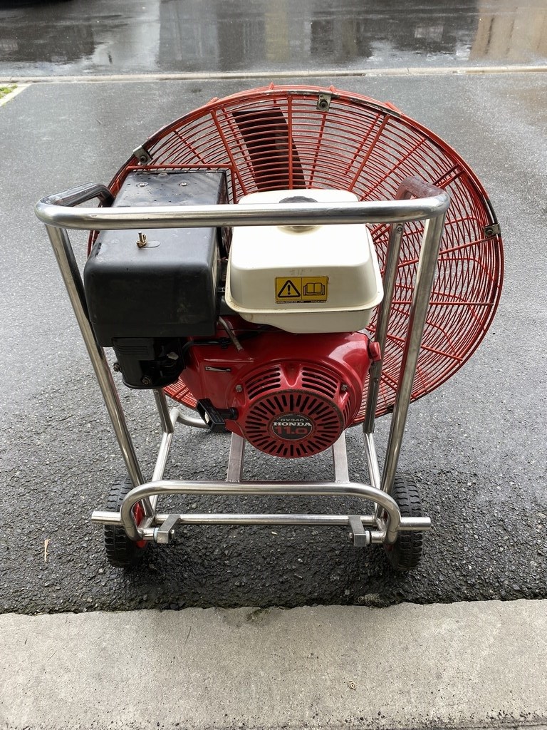 11.0 HP inflation fan, stainless steel flip wheel frame (without cracks), good cage, recent carbon fiber propeller. Recently serviced. Immediately available.