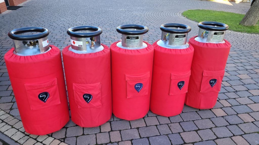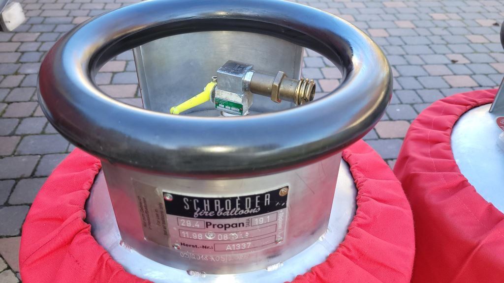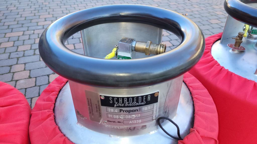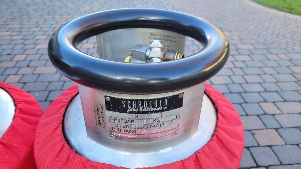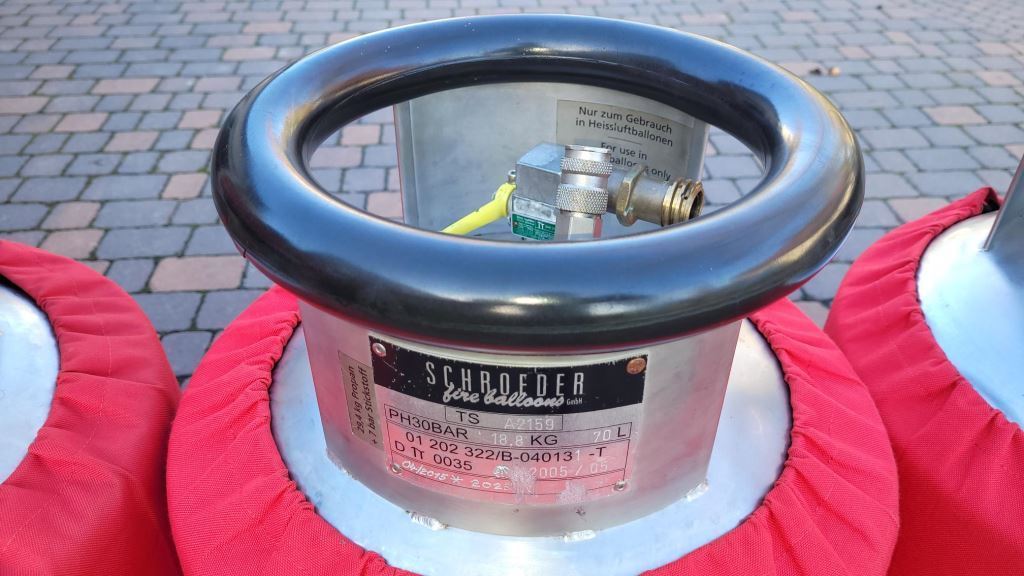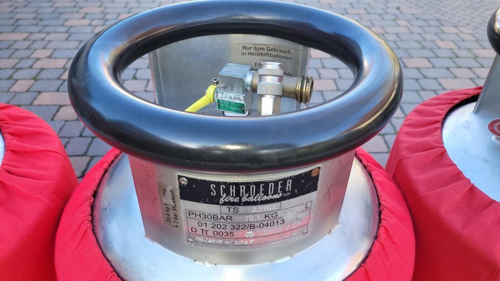 Schroeder VA70 cylinder, REGO fitting, quick shut off valve, red cover, in perfect technical condition.
