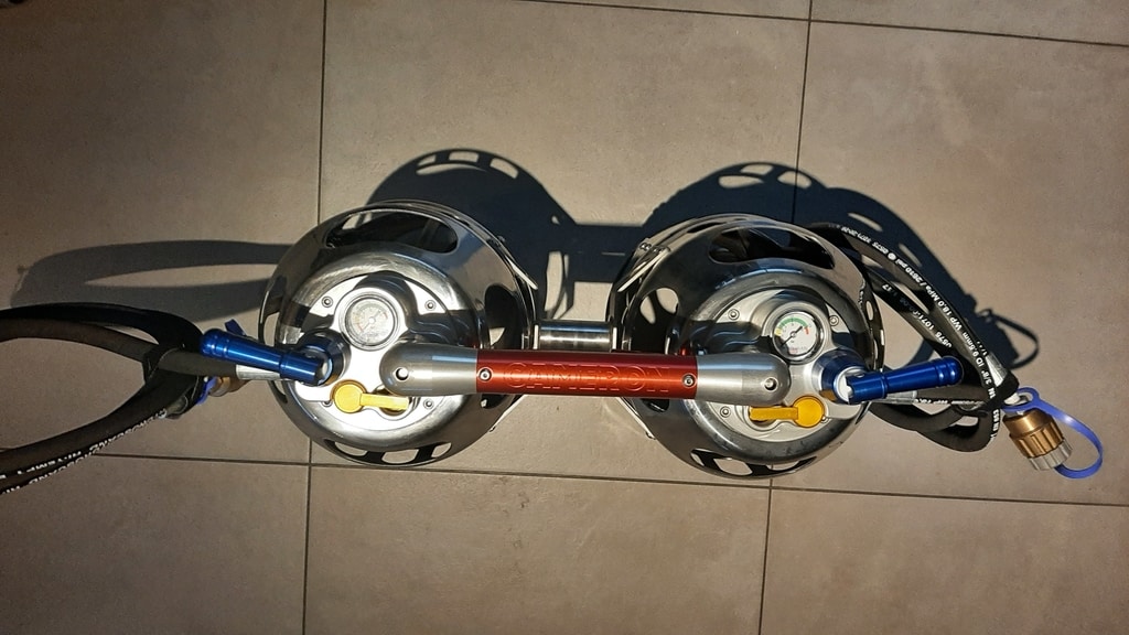 Cameron Stratus Neo double burner, built 2018, 25 flights/hrs. Liquid pilot lights, REGO fittings, hoses dated 08/2018. No burner frame included. In as new condition.