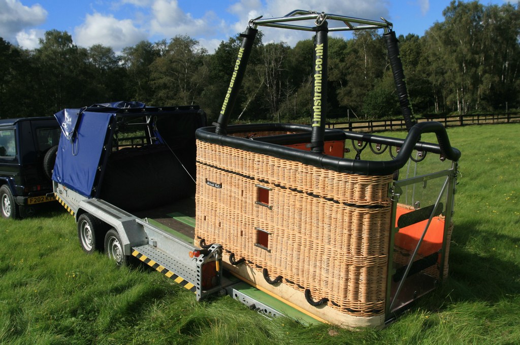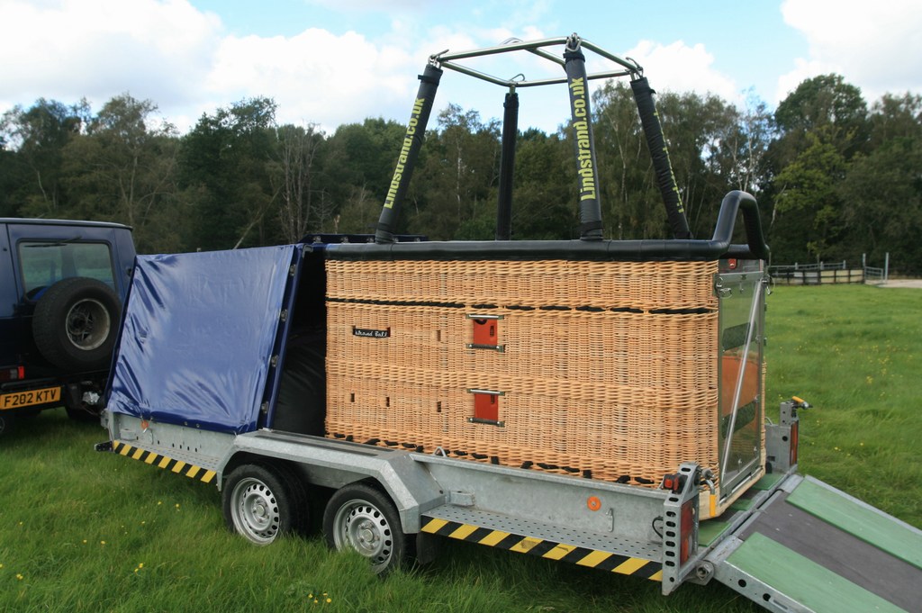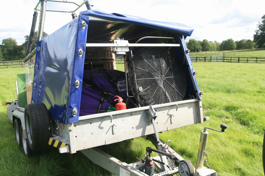 G-CIBA, Cameron N-145, built 2002, 249 hrs. Tartan weave fabric with top third Hyperlast, smart vent, turning vents. Not flown since 2019. In very good condition, flies well. Lindstrand panoramic disabled basket, built 2010, 50 flights/hrs. Black leather top rim, sidewall padding, cushion floor, drop line, fire extinguisher, pilot restraint harness, various bags, quick release. Outside dimensions 2.20m x 1.30m. Comes with wheelchair mounting hardware and cushion floor for when flying with mobile passengers. Suitable for wheelchair + 2 passengers or 4/5 mobile passengers. Lindstrand Jetstream series 2 burner, built 2014, 50 flights/hrs, liquid pilot lights, no hoses included. 2x Lindstrand V40 cylinders, built 1997/2011, slave, usable volume 72 liter, quick shut off valve, TEMA fitting. PRV/PPT/INT valid until 04/2026 / 03/2030. 8.0 HP inflation fan with stainless steel frame with fixed axle and carbon fiber propeller. In exceptional condition, always stored in covered trailer. Brian James tandem axle trailer, custom built in 2018 for this bottom end. Front frame to house envelope, fan and ancillary equipment (inflation tank, fire extinguisher, tool box, etc). Basket cover can be detached to enable transportation of basket with rigged burner. Nylon floor strips and side guides, in as new condition. ARC valid until 05/2022.