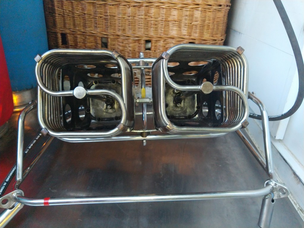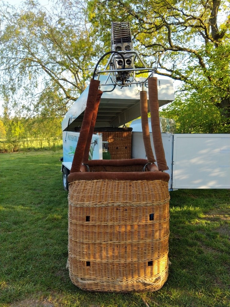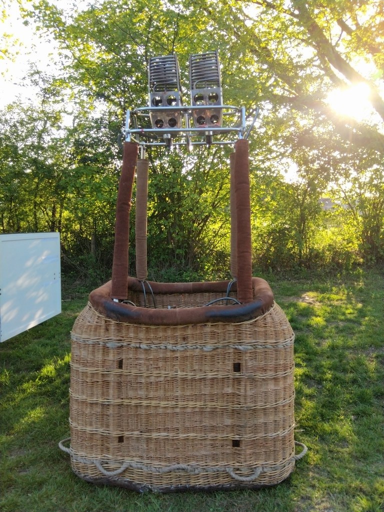 Cameron 77/84 basket (CB3115-3), approximately 500 flights/hrs. Outside dimensions 1.2m x 1.0m. Brown suede top rim, cushion floor, fire extinguisher. Cameron MK4 Super double burner, approximately 500 hrs. Liquid pilot lights, REGO fittings, hoses dated 06/2018. All in very good condition. Last inspected 10/2021, EASA Form 1 available.