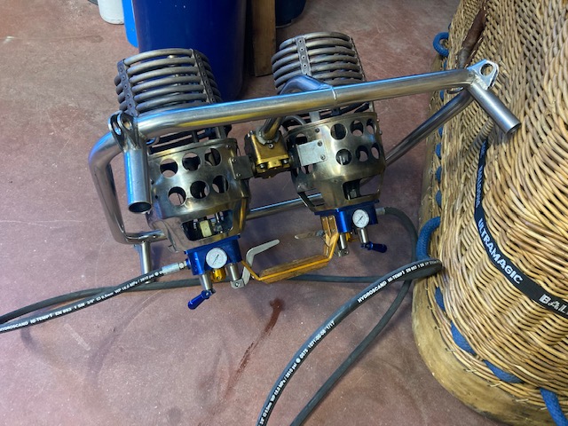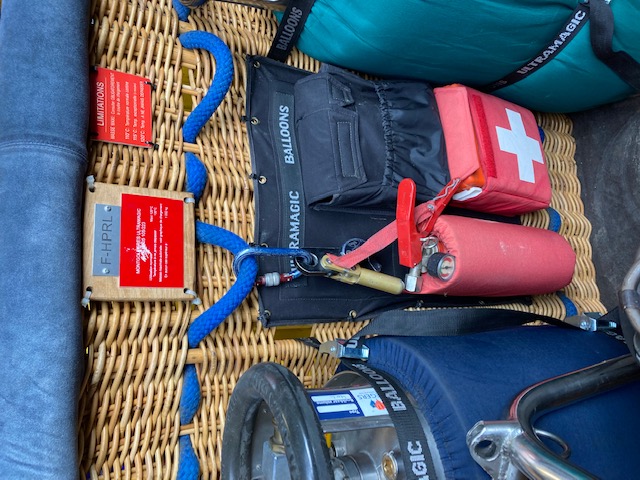 F-HPRL, Ultramagic M-105, built 2018, 113 hrs. 40% Ecomagic double layer fabric, 40% hyperlast. Ultramagic C4 basket, built 2012, approximately 150 flights, 180 hrs. 1.60m x 1.20m. Blue suede top rim, fire extinguisher, drop line. Sky Mistral double burner, built 1999, approximately 1000 flights, 1500 hrs. Liquid pilot lights, REGO fittings, hoses dated 08/2020. 3x Ultramagic M20 cylinders, built 1996, usable volume 40 liter. Quick shut off valve, REGO fitting, blue cover. PRV/PPT/INT valid until 2028. Thunder & Colt V20 cylinder, built 1980, quick shut off valve, REGO fitting, green dover, PRV/PPT/INT valid until 2028. 5.0 HP inflation fan, stainless steel flip wheel frame. Flytec 3040 and TT34 temperature sensor. ARC valid until 30/12/2023.