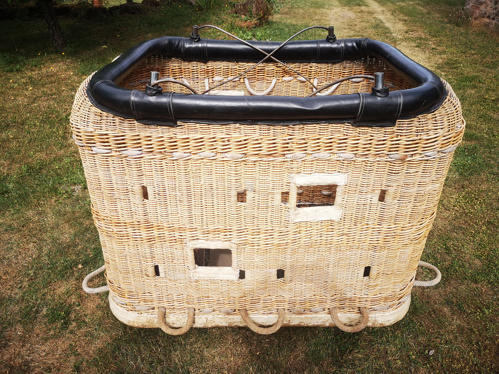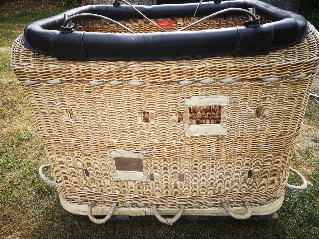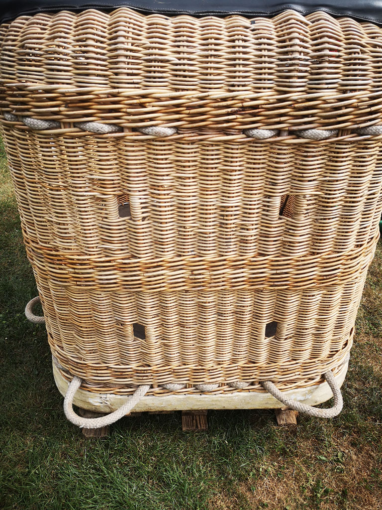 Thunder & Colt 105-120 (CB8022) hi-spec basket, inside dimensions 1.50m x 1.02m, inner height 1.12m. Black leather top rim, weight 88 kg. In good condition.