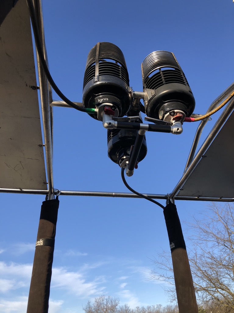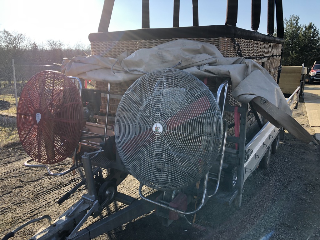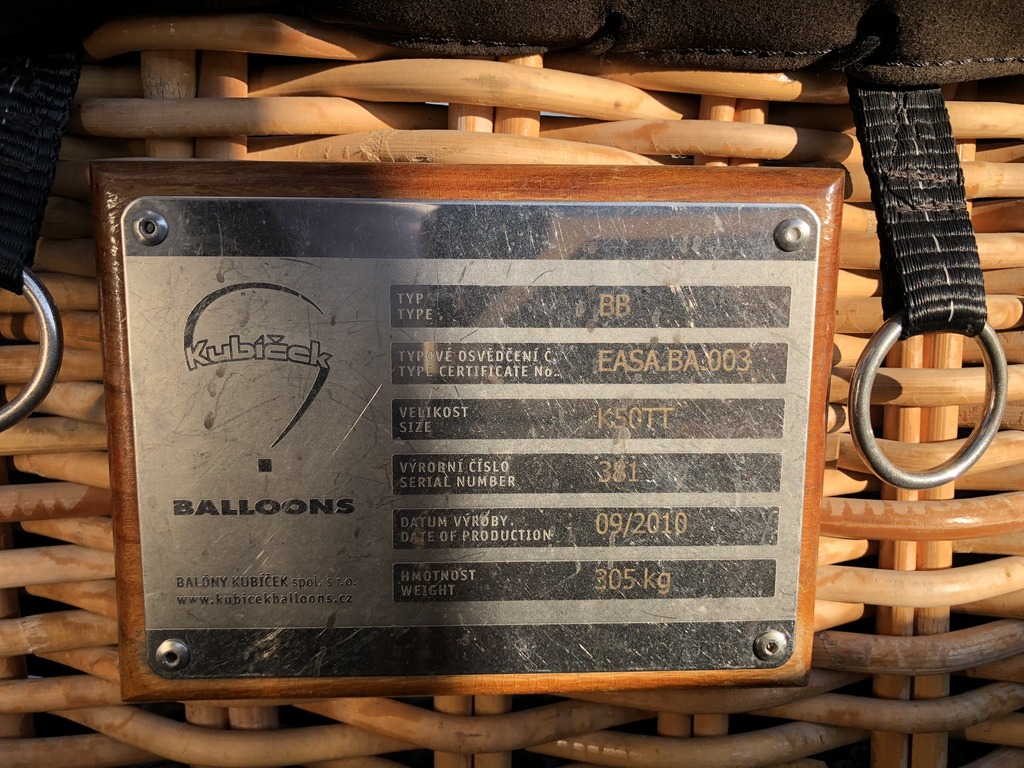 OE-ZOQ, Kubicek BB70Z, built 2010, 332 flights, 327 hrs. 7.000 m3 / 245.000 ft3. Smart vent, turning vents. Kubicek K50TT double T basket, built 2010, 332 flights, 327 hrs. Outside dimensions 3.00m x 1.60m. Black suede top rim, cushion floor, side wall padding, drop line, fire extinguisher, pilot restraint harness. Kubicek Triple Ignis burner, built 2010. 332 flights, 327 hrs. Liquid pilot lights, REGO fittings, hoses dated 2021. 4x Cameron CB2903 80 liter Stainless Steel cylinders, built 11/2012. wheel valve, REGO fitting. PRV/PPT/INT expired since 11/2022. 2x Honda 11.0 HP inflation fan, stainless steel flip wheel frame, wooden propeller. Tandem axle trailer, built 2010, with tiltable flatbed, with 2 inflation fan mounts on front, max total weight 3500 kg. ARC valid until 08/2023