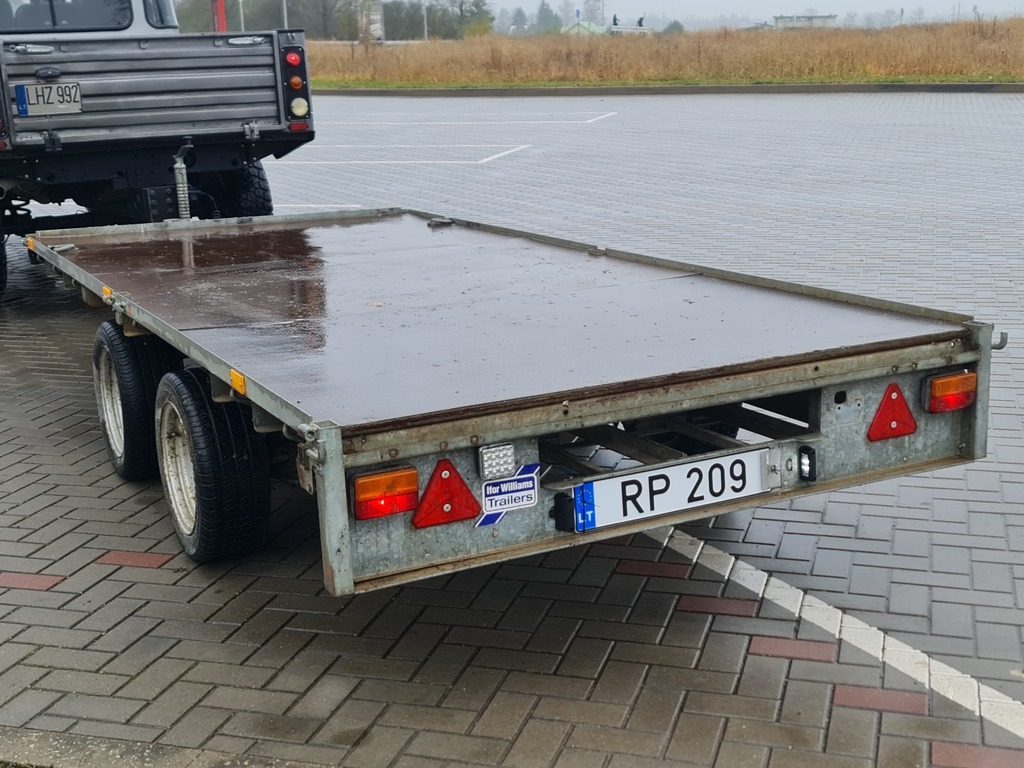 Ifor Williams 3.6m tandem axle flat bed trailer, built 2003, 3.66m x 1.66m. Max total weight 3500 kg, empty weight 580 kg. Good tyres, recently passed inspection.