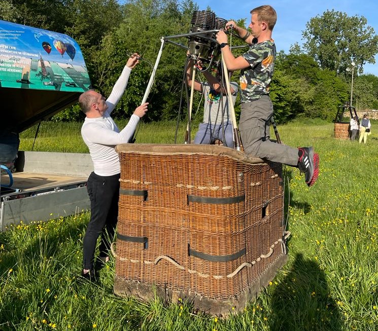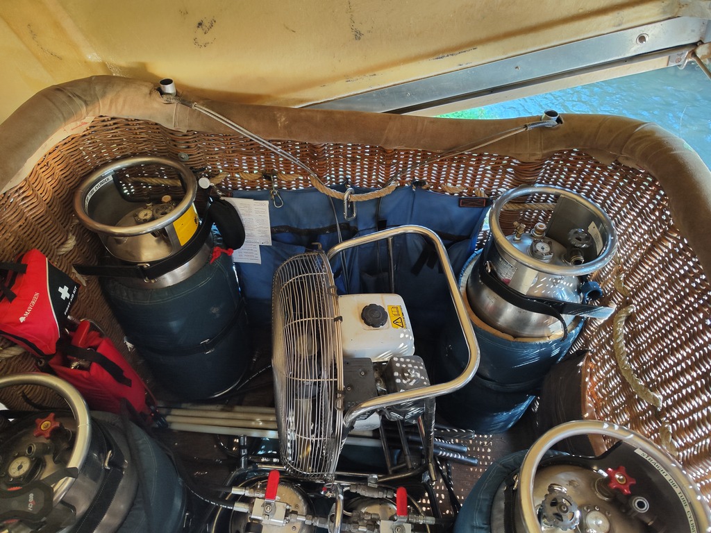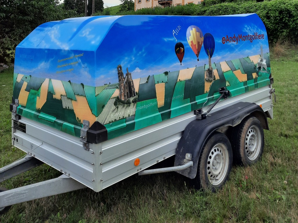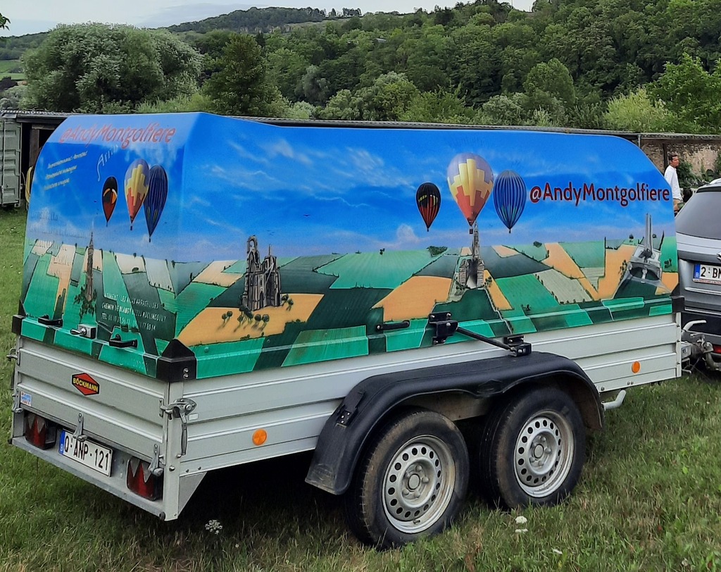 F-GJXM, Chaize JZ30F16, built 12/2000, 340 flights, 320 hrs. 3.000 m3 / 105.000 ft3. Chaize 405 basket, built 2000, 340 flights, 320 hrs. Outside dimensions 1.30m x 1.10m x 1.15m. Beige leather top rim, fire extinguisher, drop line, first aid kit, quick release, air pusher, basket weighs 100 kg. Colt MK2 double burner, vapour pilot lights, REGO fittings. 4x Cameron CB599 cylinder, built 1991. 2x master, 2x slave. Usable volume 41 liter. REGO fitting, blue cover, PRV/PPT/INT valid until 2026. 5.5 HP inflation fan, stainless steel flip wheel frame, carbon fiber propeller. Bockmann 201D1 tandem axle trailer, built 2006, max total weight 2000 kg, manual winch, Wifi reverse camera. Text on trailer will be removed. ARC valid until 07/2024.