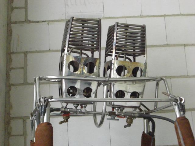 Cameron 77 Aristocrat basket, brown leather, very good condition. Cameron MkIV double burner with whisper burner. Vapour pilot lights. 2x Worthington 40 liter Master. 1x Worthington 40 liter Slave.