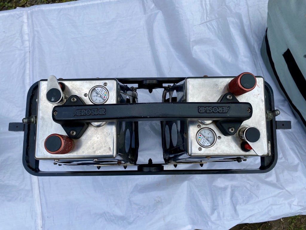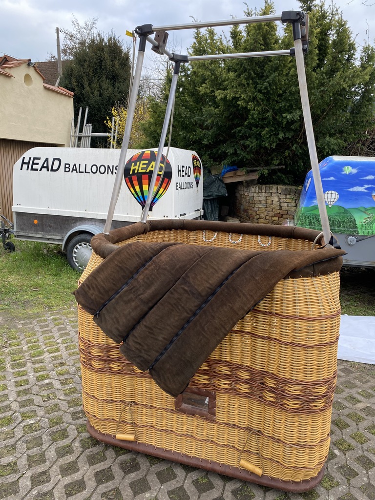 Head 268-b basket, built 2009, 2 flights/hrs. Brown leather top rim, outside dimensions 140 x 115 x 110 cm. Including two storage bags. Aerostar Zone Five double burner, built 2001, 300 flights/hrs. Liquid pilot lights.