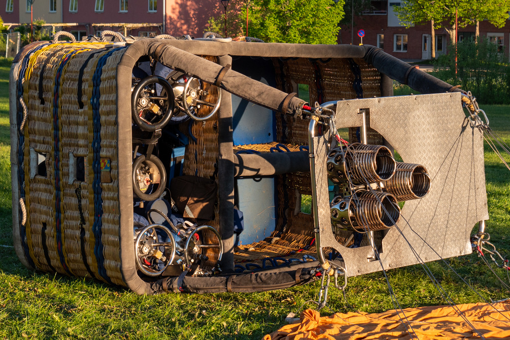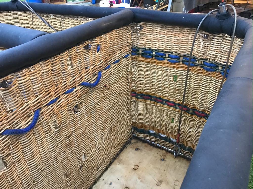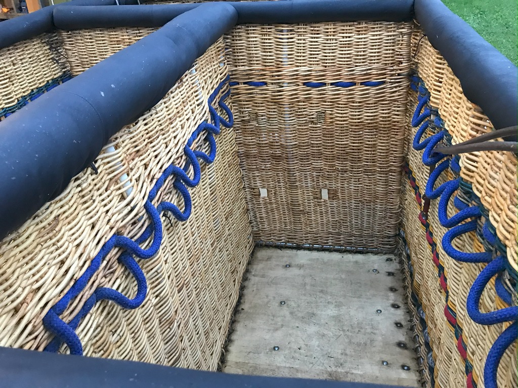 Lindstrand LBL single T basket, built 1996, black suede top rim, (new) sidewall padding, cushion floor. Dimensions 2.40m x 1.52m. Lindstrand LBL Jetstream triple burner, built 1996, liquid pilot lights, TEMA fittings, hoses dated 03/2016. In height adjustable frame. Comes with EASA Form 1 if desired.