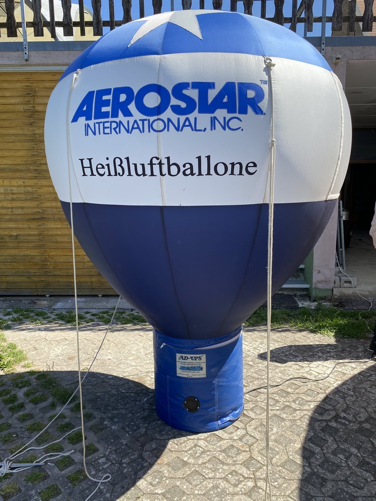 Cold air inflatable, Aerostar, approximately 2.5m high and 1.7m wide. Velcro for attaching advertisement banners. Blower operating on 220V, european plug. In used but good condition.