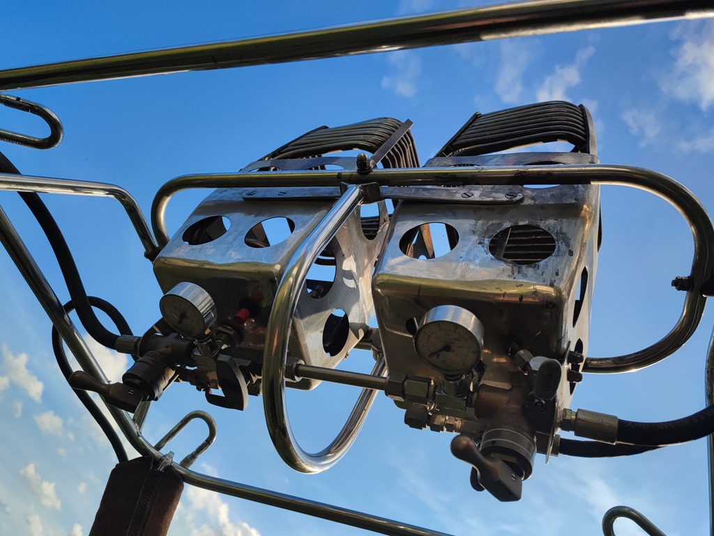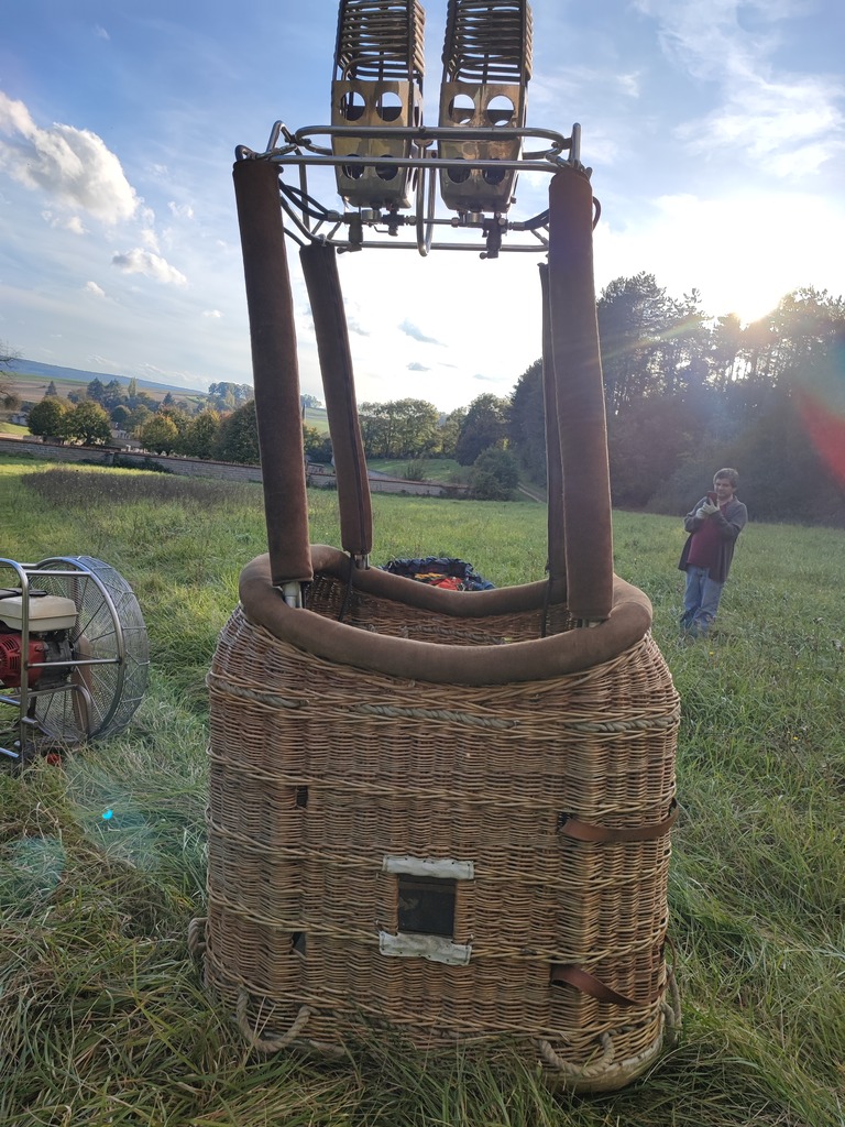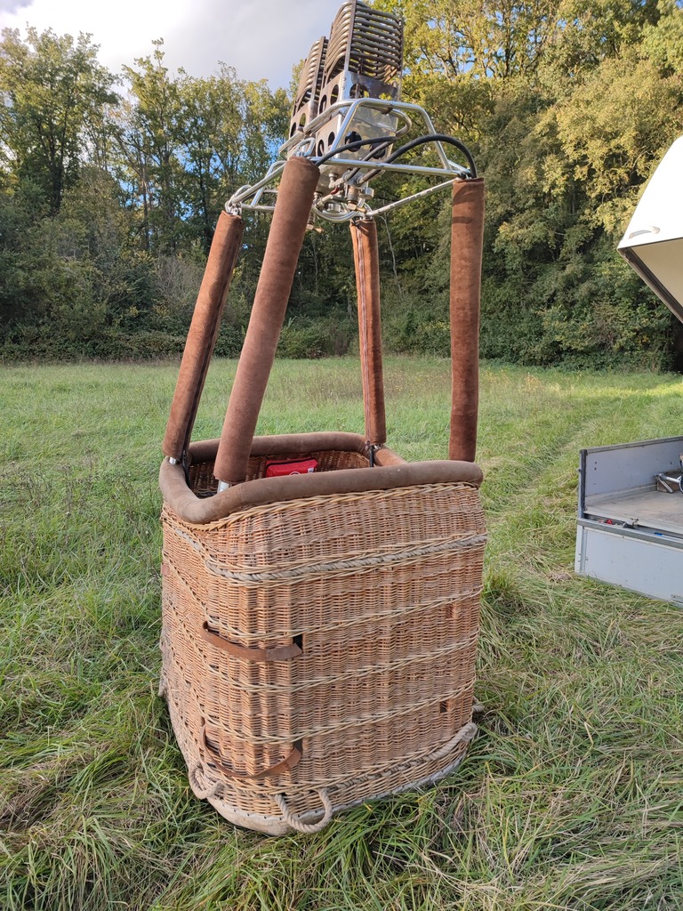 G-MOKE, Cameron V-77, built 1991, 275 flights/hrs. Hyperlast top (parachute + 4 rows). Cameron CB300-2A basket, built 1991, 275 flights/hrs. Brown suede top rim, cushion floor, fire extinguisher, drop line, pilot restraint harness. Cameron MK4 double burner, built 1991, 275 flights/hrs. Vapour pilot lights, REGO fittings. 3x Cameron CB599 cylinders, built 1991, 2x master, 1x slave. Blue cover, PRV/PPT/INT valid until 05/2033. 5.0 HP inflation fan, fixed axle frame, wooden propeller. ARC expired.