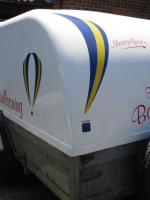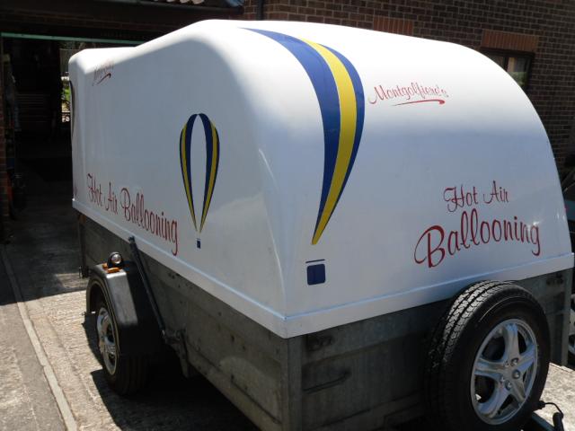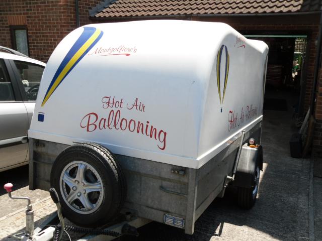Hard cover Straffordshire trailer. 3.00m long, 1.70m wide, 1.80m high. Featured for ballooning. The trailer has a braking system. Wooden floor with plastic rails, built-in lock at joint and a small light on the inside of the trailer. In excellent shape, ready for use. Located in Bristol, UK.