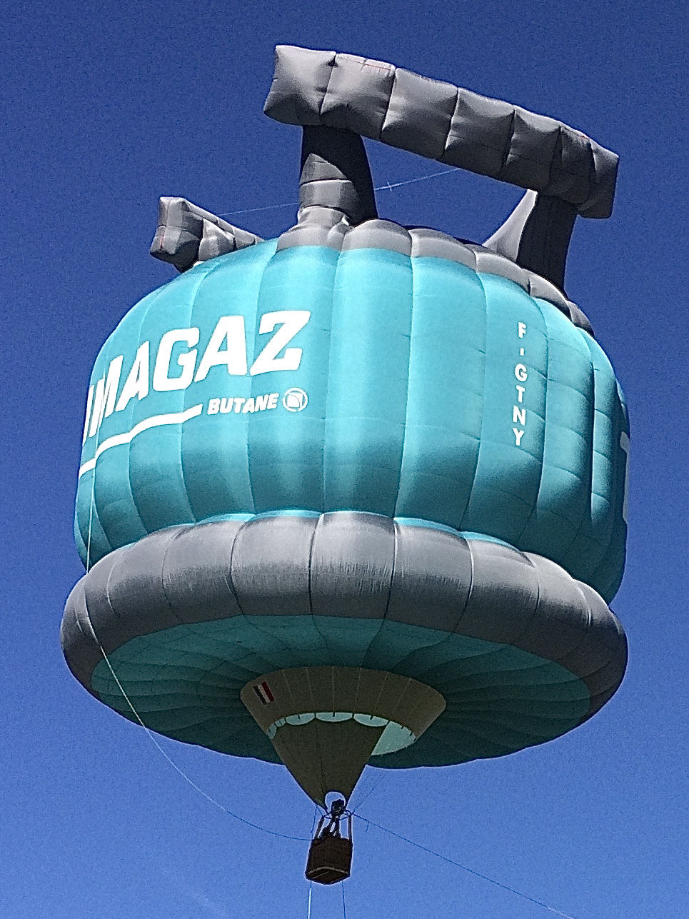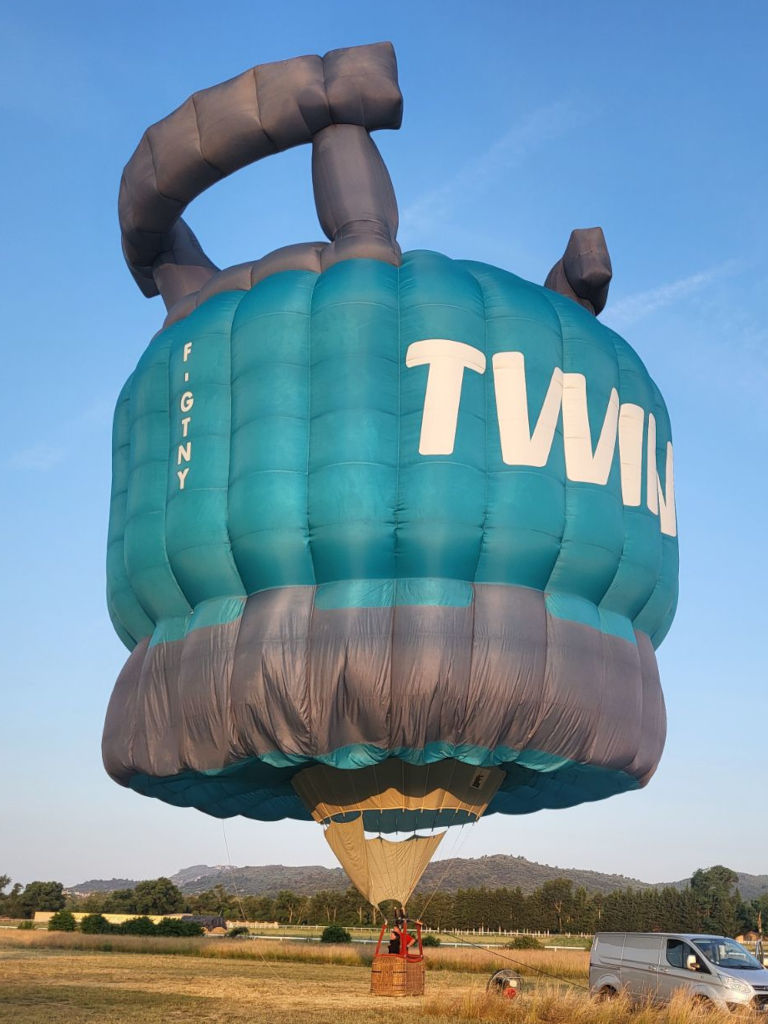F-GTNY, Schroeder Fire Balloons G special shape, volume 3000 m3 / 105.000 ft3, built 1999, 98 flights, 106 hrs flown, 10 hrs tethered. A little porous. ARC valid until 22/04/2026.