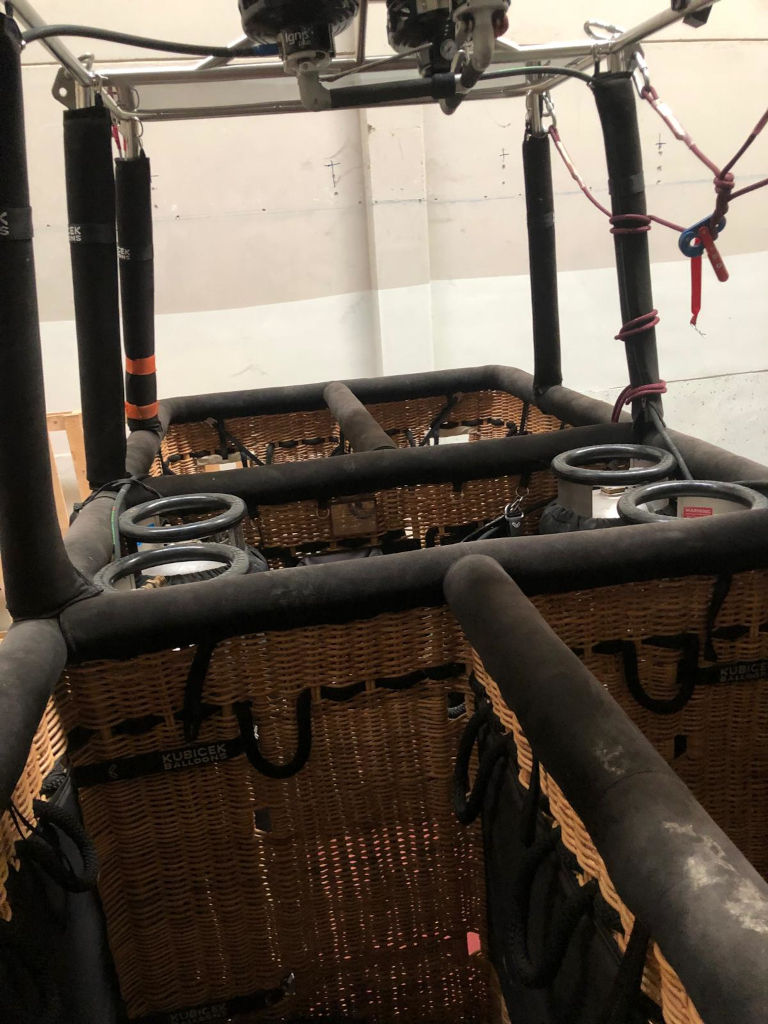 EC-OBI, Kubicek BB100Z, built 2023, 59 flights, 50 hrs. 10.000 m3 / 350.000 ft3. Full hyperlast, smart vent, turing vents. Kubicek K60TT basket, built 2023, 59 flights, 50 hrs. Outside dimensions 3.8m x 1.6m (suitable for 16 passengers), black suede top rim, sidewall padding, fire extinguisher, fire blanket, drop line, pilot restraint harness, winching strap, vertical skids on side, Bonanno (W-type) quick release. Kubicek Ignis Plus triple burner, built 2023, 59 flights, 50 hrs. Liquid pilot lights, REGO fittings, hoses dated 2023. 4x Kubicek KB97L King cylinders, built 2023, 59 flights, 50 hrs. Usable volume 82 liter. Slave, quick shut off valve, REGO fitting, black cover. PRV/PPT/INT valid until 2033. 4x Kubicek KB72L Queen cylinder, built 2023, 59 flights, 50 hrs. Usable volume 61 liter. Slave, quick shut off valve, REGO fitting, black cover. PRV/PPT/INT valid until 2033. 2x 13.0 HP inflation fan, stainless steel flip wheel frame, wooden propeller. ARC valid until 06/2026.