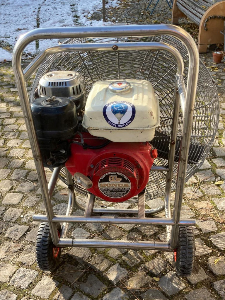 8.0 HP inflation fan, stainless steel flip wheel frame, wooden propeller. In very good condition.