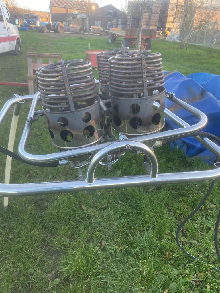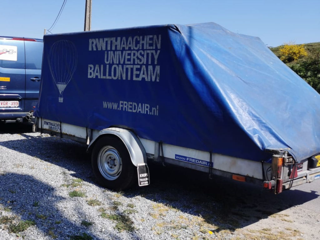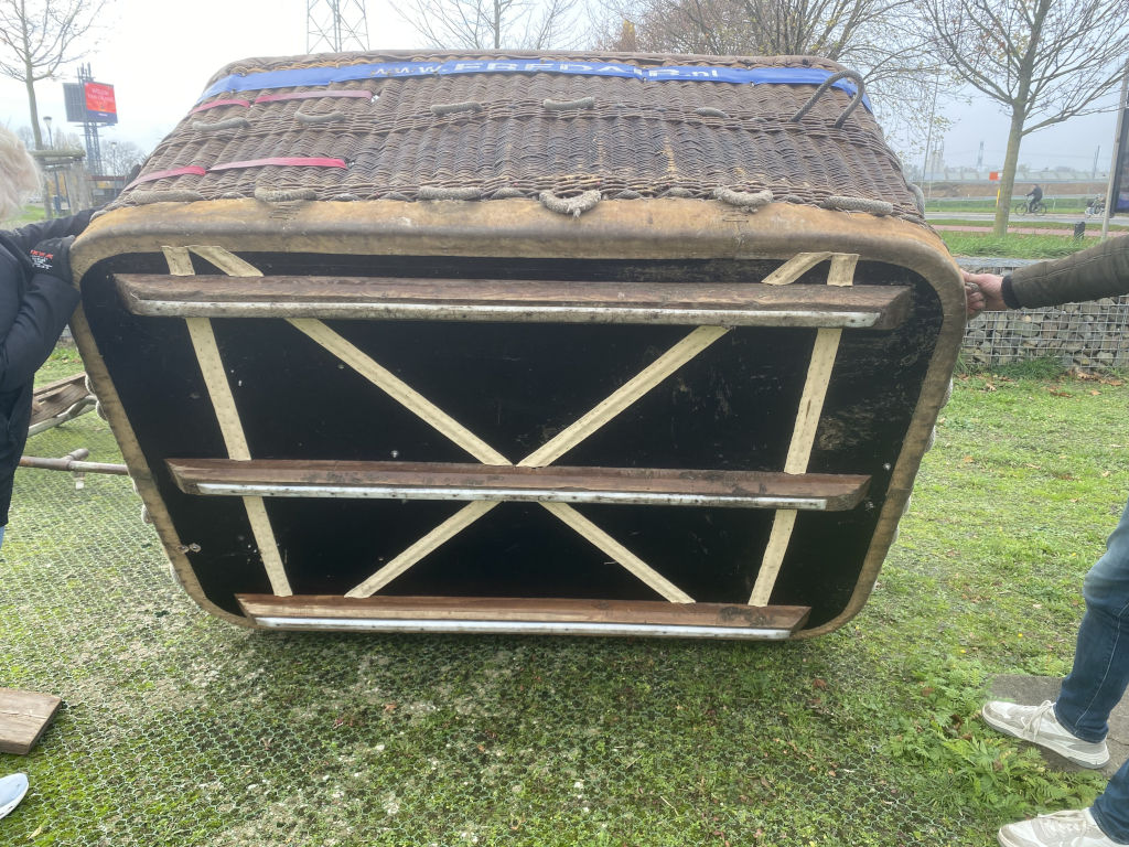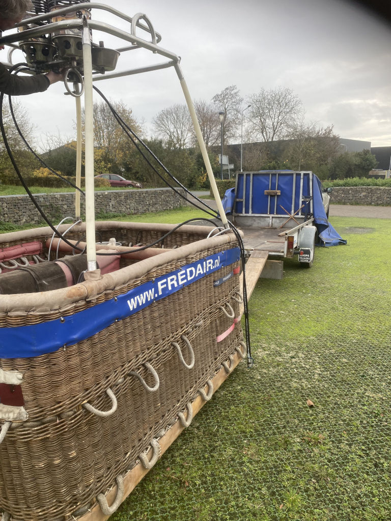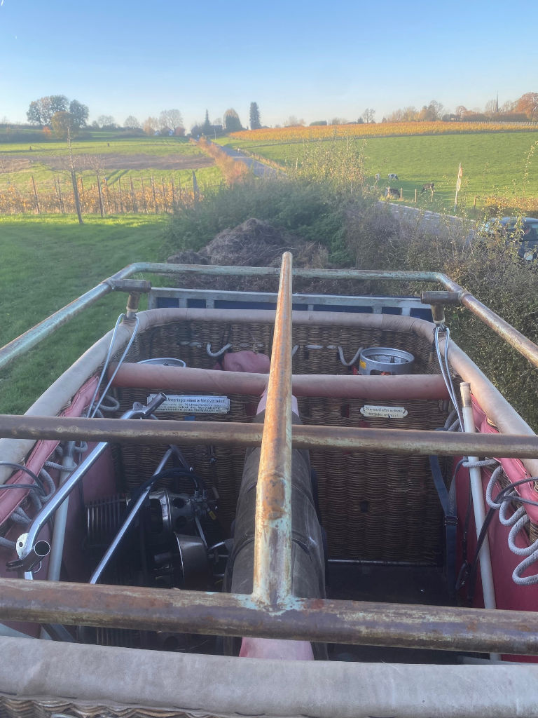 Cameron single T (CB8202) basket, built 1990, 650 flights/hrs. Outside dimensions 2.26m x 1.52m. Brown suede top rim, sidewall padding, pilot restraint anchor. Thunder & Colt MK2 triple + CLF (liquid fire) burner, built 1990, 650 flights/hrs. Vapour pilot lights, TEMA fittings, hoses dated 05-2020 and 04-2022. Fobo 1300SP single axle trailer, built 1988, inside dimensions 3.50m x 1.75m. Max total weight 1300 kg. With PVC cover.