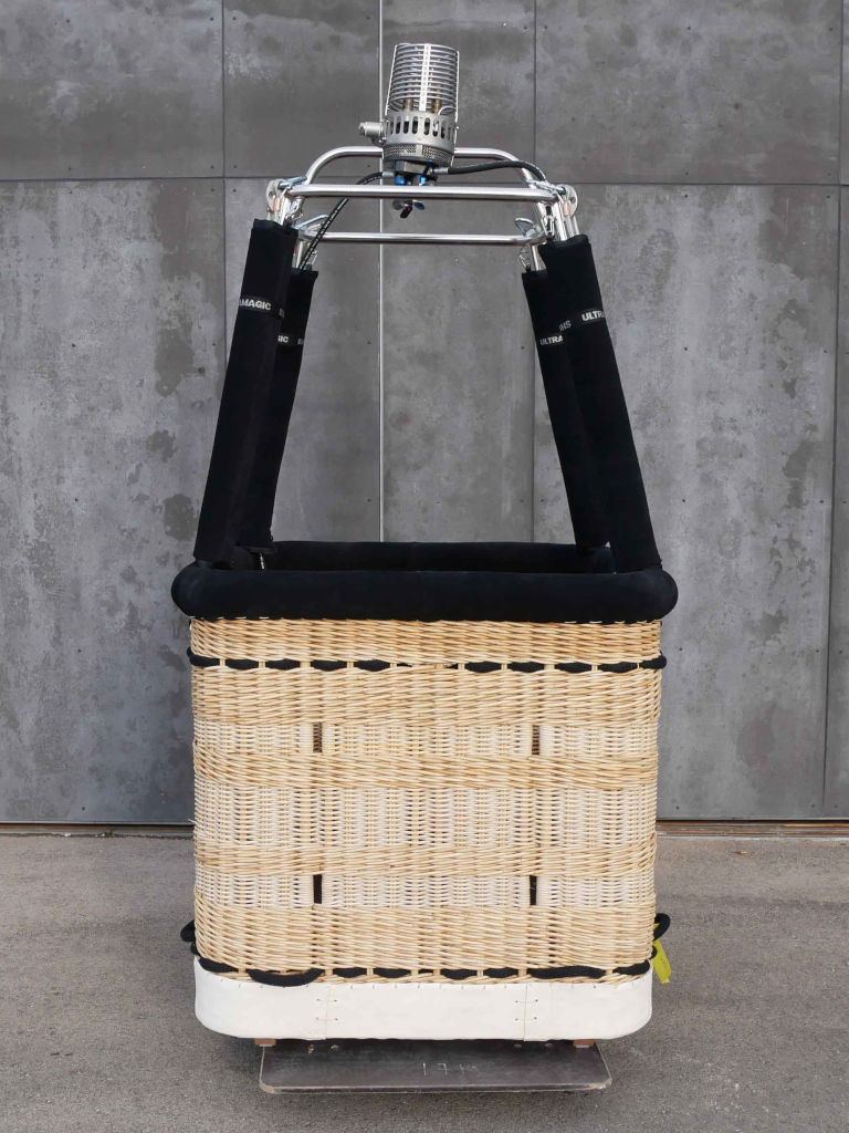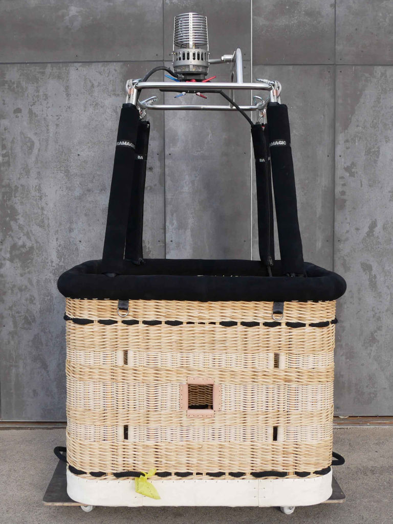 Ultramagic C3 basket, built 2025, 1 flight/hr. Black suede top rim, cushion floor. Drop line, fire extinguisher, radio bag. Ultramagic BMK-008 PowerPlus Single burner, built 2025, 1 flight/hr. Liquid pilot lights, TEMA fittings, hoses dated 11/2025.