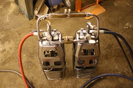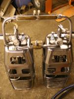 Russian made double burner, by Interavia. Double waverly whisper valves. Liquid pilot lights. Cross over valve. Toggle main burner valves. Looks very much like a Cameron Mark4 copy. In nice and clean condition. Could be a very interesting and cheap burner for your Annex II balloon. No frame, but Cameron MK4 frame should fit. Would consider a swap for something useful or interesting.