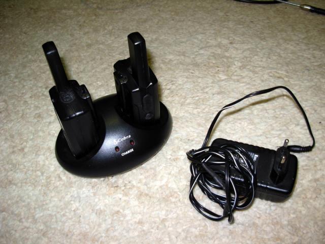 Cobra radio set, with charger. According to specs of manufacturer, distance range up to 28 km.