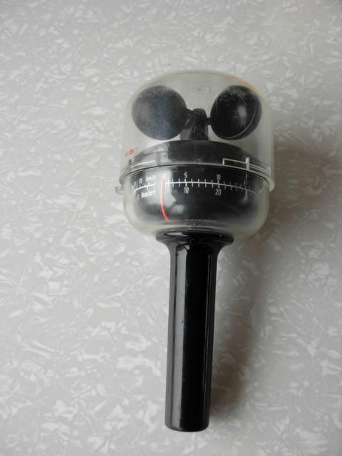 Handheld windmeter, displays wind speed in knots and meters per second.