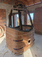 Cameron 120 open basket, built 1996, 600 flights/hrs. Outside dimensions 1.75m x 1.07m. Brown leather top rim, sidewall padding, cushion floor, drop line, various bags, pilot restraint harness, quick release. Zipper of 1 pole cover and pole bag not working but can be repaired. Cameron Shadow double burner, built 1996, 600 flights/hrs. Liquid pilot lights, REGO fittings, hoses dated 04/2019. Cameron CB959 cylinder, built 1992, usable volume 70 liter, slave, REGO fitting, blue cover, PRV/PPT/INT valid until 03/2026. Worthington cylinder, built 1986, slave, REGO fitting, blue cover, PRV/PPT/INT valid until 08/2035. 8.0 HP inflation fan, fixed axle frame, wooden propeller. Runs well but frame is aged. 2.7m Sluis tandem axle trailer, built 2000, inside dimensions 2.68m x 1.38m. Empty weight 500 kg, max total weight 2000 kg. Stainless steel air pusher. Last inspected 08/2025.