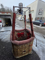 Thunder 65 basket, built 1992, approximately 400 hrs. Inside dimensions 1.00m x 1.00m. Red suede top rim, various bags, in very good condition, weight 45 kg. Ultramagic PowerPlus BMK-008 single burner, built 2017, approximately 200 hrs. Liquid pilot lights, REGO fittings, in 50 x 50 cm frame.