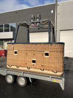 Aerotechnik J1 basket, built 1991, 450 hrs. Dimensions 1.16m x 1.16m. Black suede top rim, first aid kit, fire extinguisher, fire blanket, drop line. Steel cables damaged but officially deemed airworthy by CAO. Foldable uprights. Kubicek HB2 double burner, built 1997, vapour pilot lights, REGO fittings, hoses dated 03/2019. 2x Thunder & Colt V30 cylinder, built 1987, master, quick shut off valve, REGO fitting, red cover. PRV/PPT/INT valid until 08/2033. 6.0 HP inflation fan, stainless steel flip wheel frame, wooden propeller. Agados VZ-21 single axle trailer, built 1998, overrun brake. Max total weight 750 kg. With side door, fan mount, spare wheel.